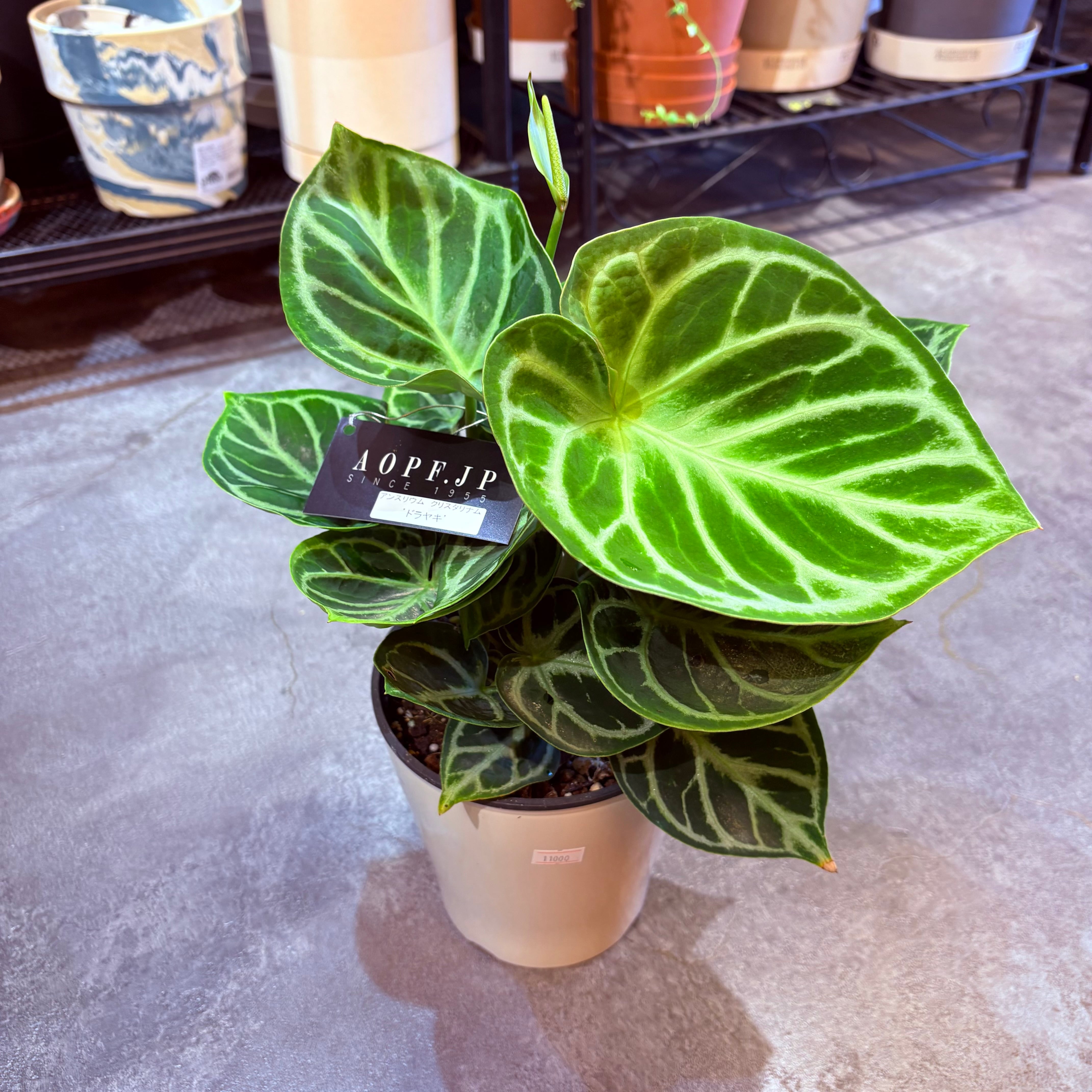 アンスリウム クリスタリナム ドラヤキ 5号【荒木植物園さん】